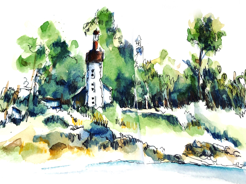 Les crayons Koh-I-Noor “Magic” sont très intéressants pour cela. Ils permettent de poser rapidement les premières lignes, avant de continuer avec le stylo et l’aquarelle.